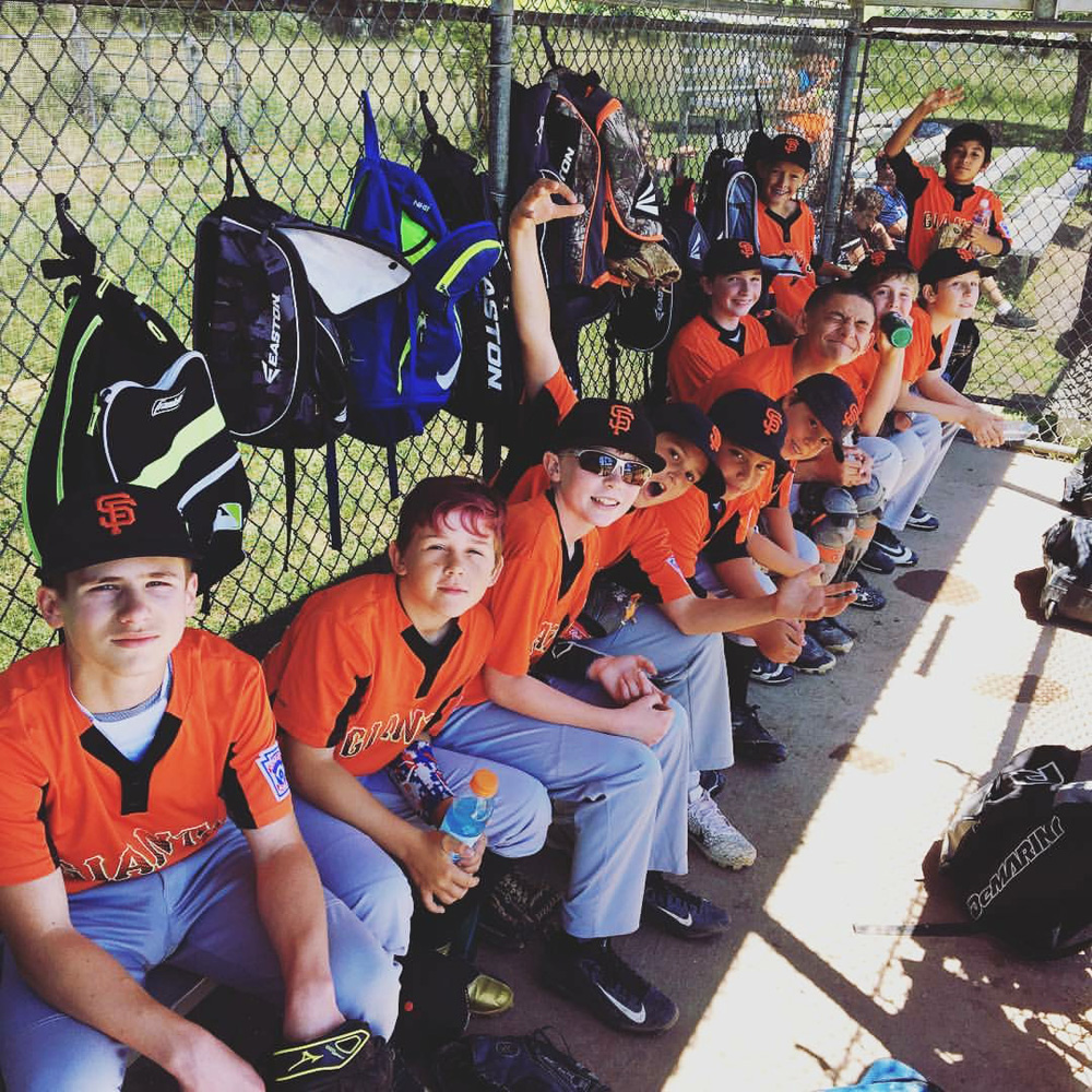 May 14, 2017What a great Mother's Day game! Giants beat the Cubs 13-7 and Hunter got one of the two games balls for getting on base every time, and two amazing catches from center field getting outs. Seven of our players were hit by the pitcher and one had to go to the ER. Hunter was hit in the elbow! Click any image for larger view.