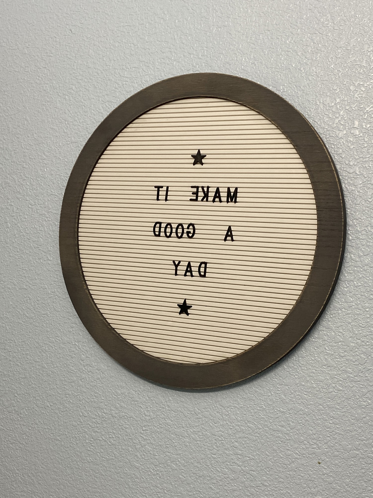 The maple cabinets were getting water damaged in the boys' bathroom so we painted them. We also added hardware since there wasn't any originally.