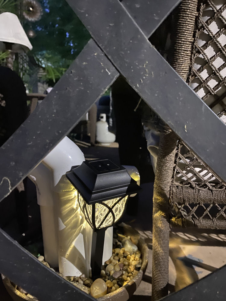 We already had a piece of PVC pipe and a shallow pot, so we picked up a few of the PVC elbows at Home Depot and made our own! We transported one frog to it already! There is also a solar light to attract bugs for the frogs at night.