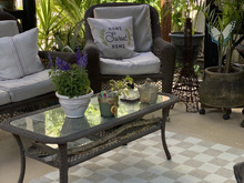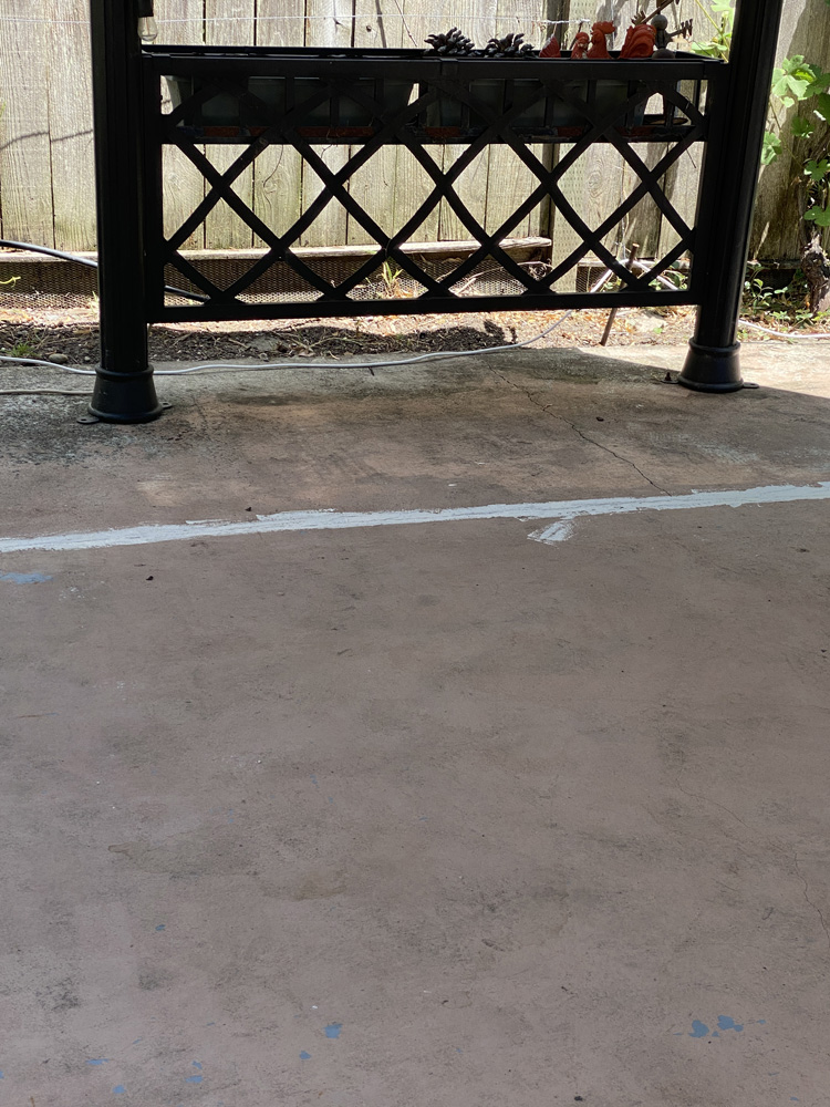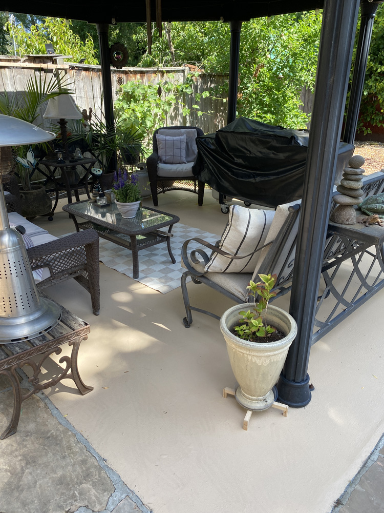 May 2025We used to have a hot tub where the slab was in the gazebo so we painted over the original coating with some anti-slip paint that was peeling. Since we are fixing up the yard for Hunter's 21st birthday party, we decided to take everything out and repaint the slab with the same anti-slip paint, but this color is a better match to the flagstone and the house. Click any image for larger view. |
