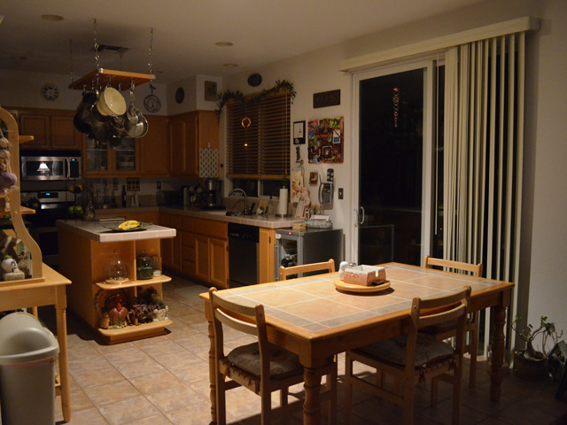 Our computer desk is very big and did not fit well where we had it between the kitchen and living room. Since we no longer have the pool table in the front room, it was pretty empty and had almost no furniture. We decided to move the desk in the front room -- which looks great! It also gives us so much more space around our kitchen table.