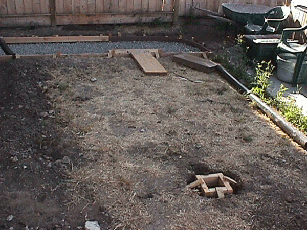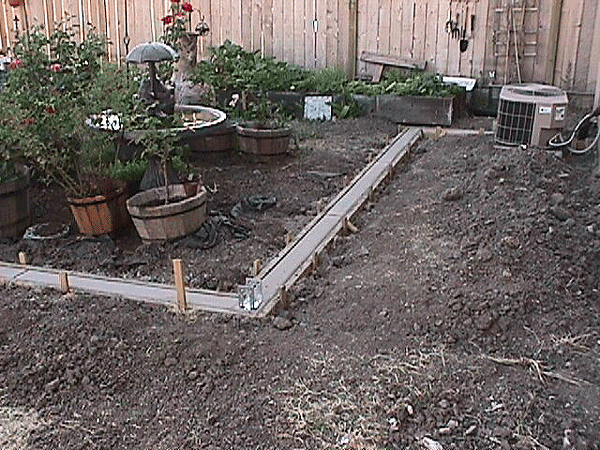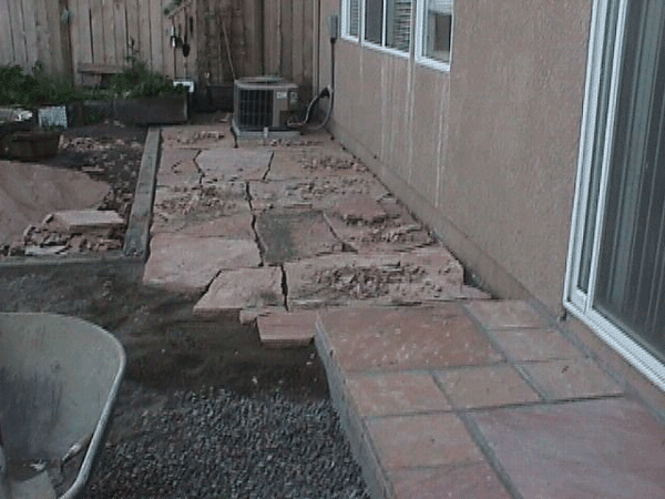 Before the sidewalk. New sidewalk. Sidewalk in front. Nothin' but dirt! Getting ready for the patio. Framing the patio. Still preparing! Ready for flagstone. Square flagstone for the step. Layout for the stone on the step. New step. Looking good!