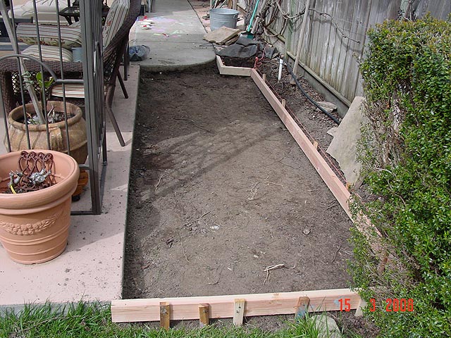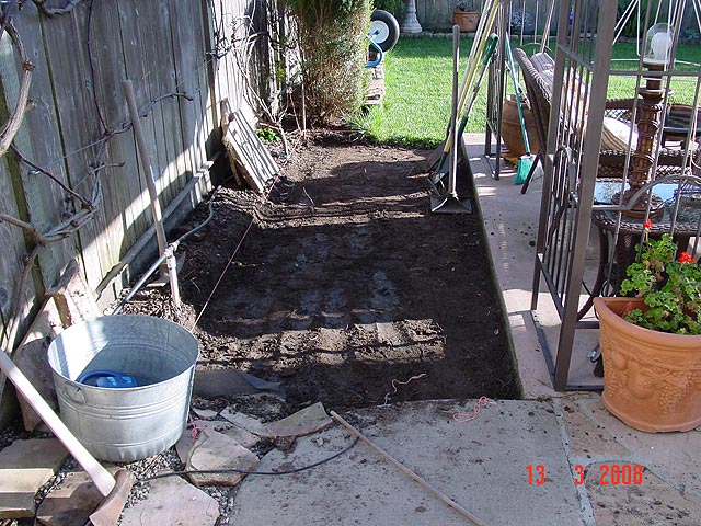 Dave getting the area ready for the new slab. 12 feet x 4 feet area. Almost all framed. Framing done. View from the other side. Filled with rock. Wire down. Ready for cement! Another view Dave has to mix 30 bags of cement! The mixing begins... Dave leveling the cement. Dave still working on it...