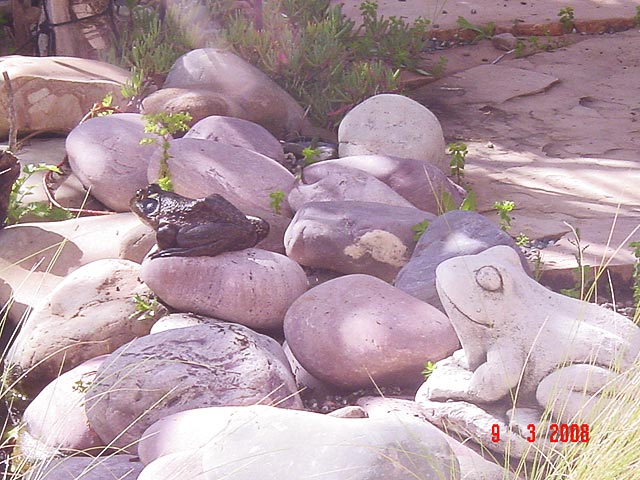 Our Bullfrog enjoying the spring weather. Big palm tree Tasha Lots of fish! Pond at night. Fish and turtles Fish and turtles waterfall pond being misted