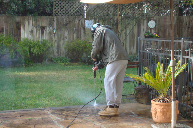 The flagstone patio was getting very black with mold and dirt from winter. Dave pressure washed and it looked better, but was still a little black. He also applied the 30-Second Cleaner we got at Friedman Brothers. It seems to have removed a little bit more of the mold. We still have some dark, moldy spots and may try another cleaner -- but it looks much better.