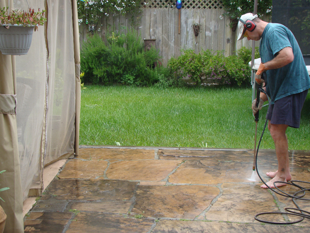 We're still waiting for the rain to stop, but we figured it's time to pressure wash the patio. Hopefully, the weather will warm up soon and we can enjoy it!