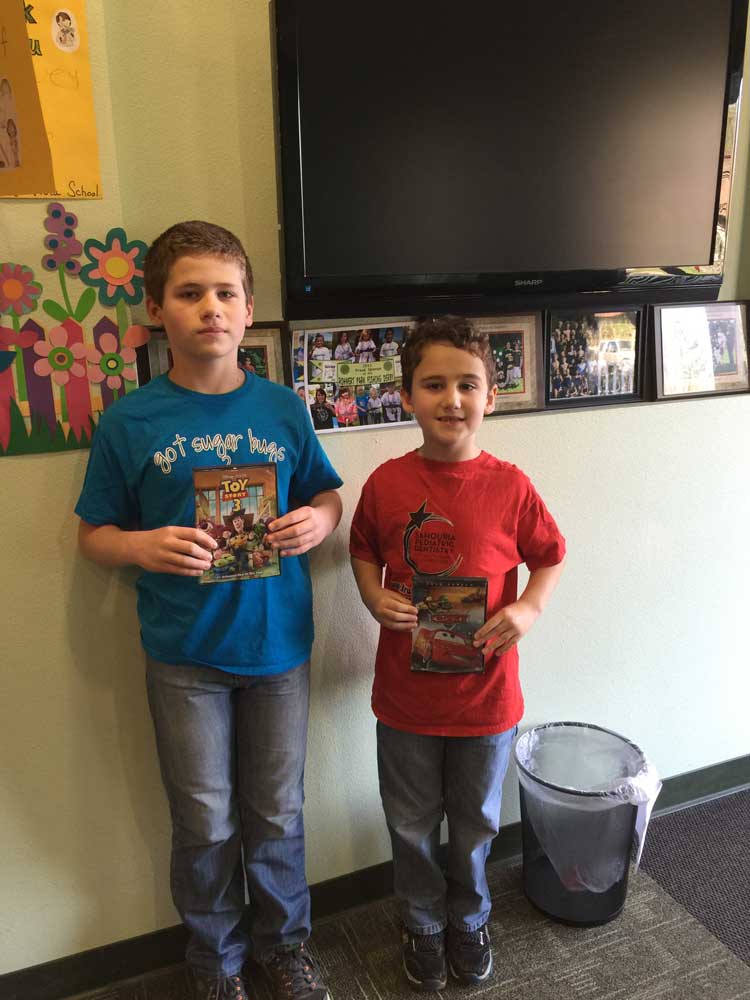 January 26, 2016Another visit to the dentist with no cavities! (Ryder had his shirt on backwards -- LOL!) Click any image for larger view.