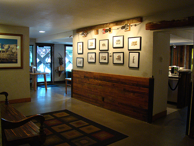 Hunter Click for animation of snowman. He didn't really stomp on him... snowy log snowy log Hunter's handprints snowy log snowy logs elevator at our hotel pictures in the lobby at our hotel hot tub at the hotel sauna at the hotel